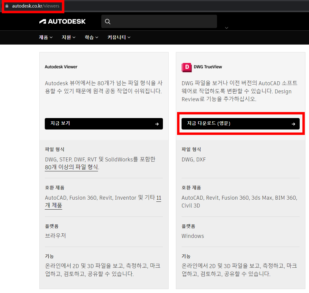 위 링크는 AUTODESK 공식 홈페이지에서, 링크를 복사해서 붙여넣었습니다.