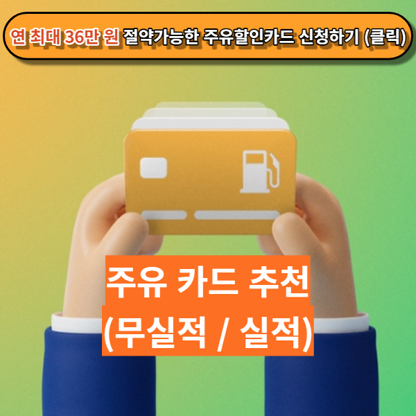 대표적인 주유 카드들 중 실적별로 가장 효율이 좋은 3가지 최고의 주유할인카드를 추천드립니다.